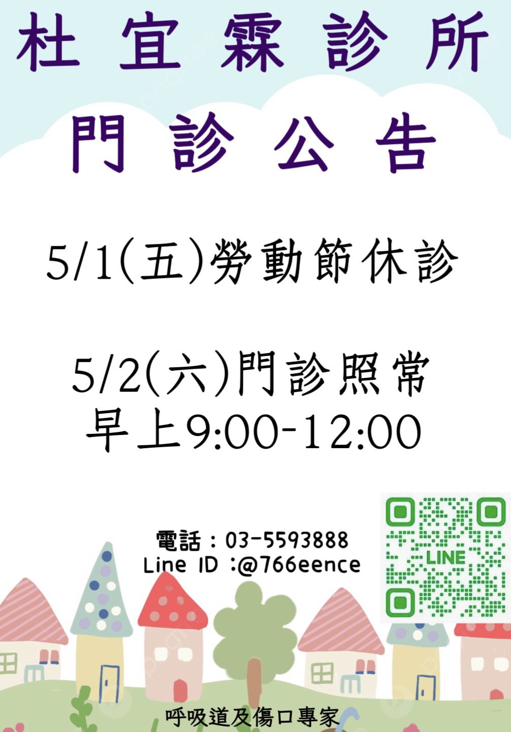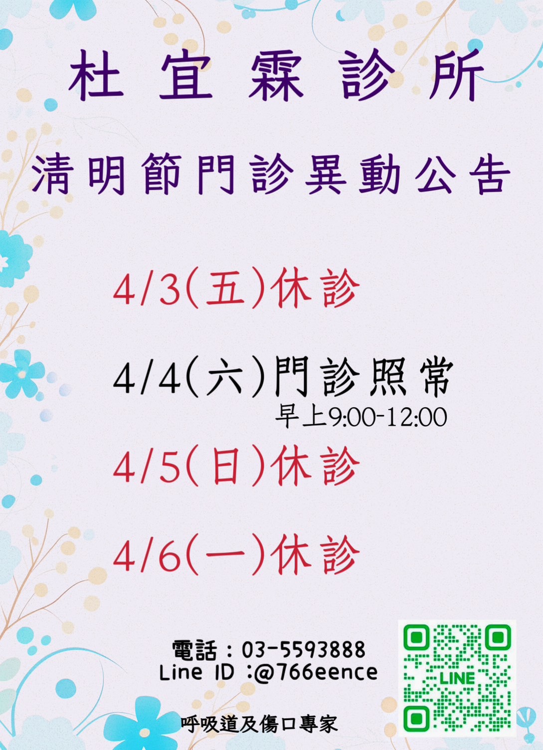新竹縣新豐鄉明新一街8號(線上掛號 @766eence) - 看診時間